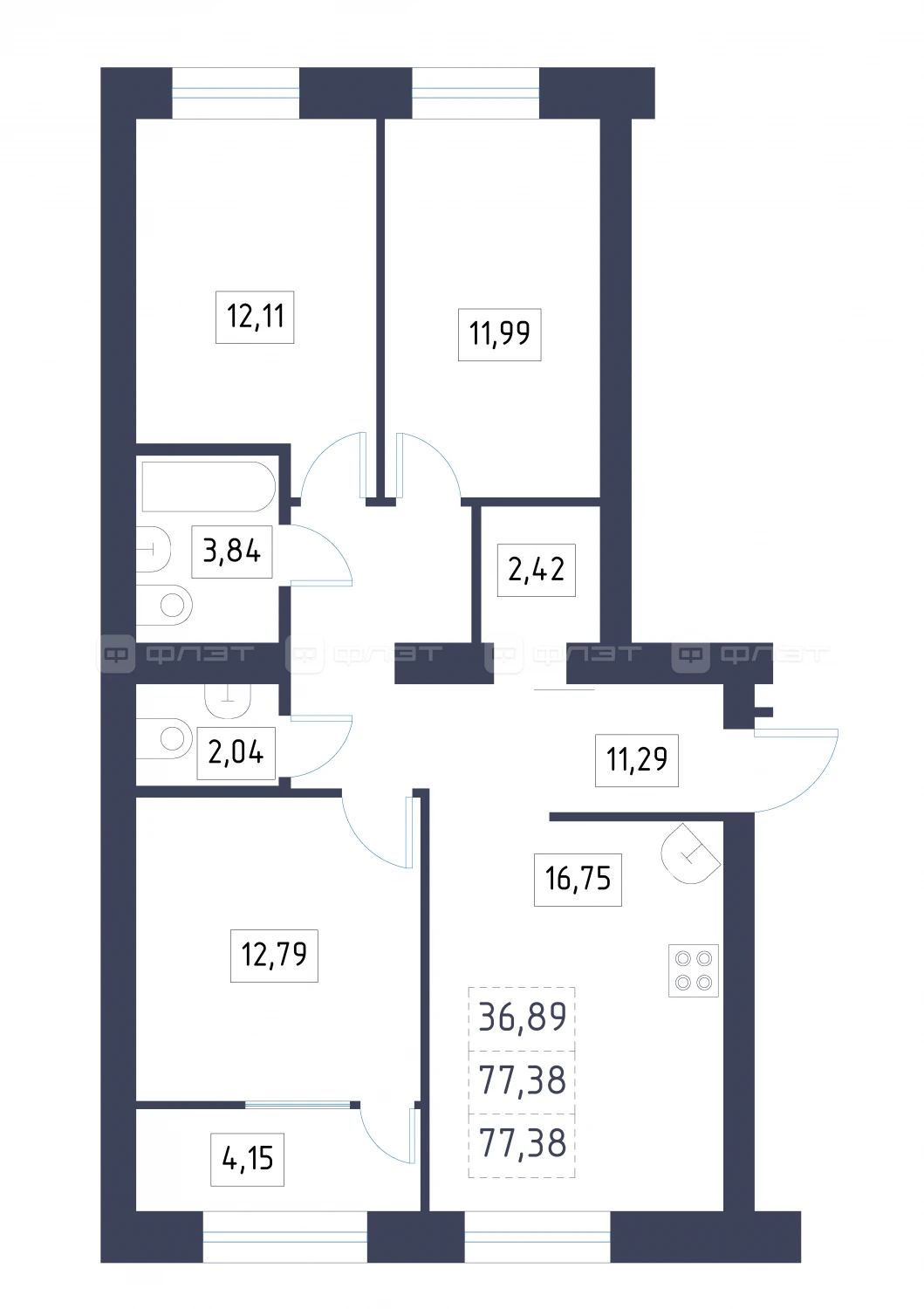 - 77.38/36.89/16.75 м²