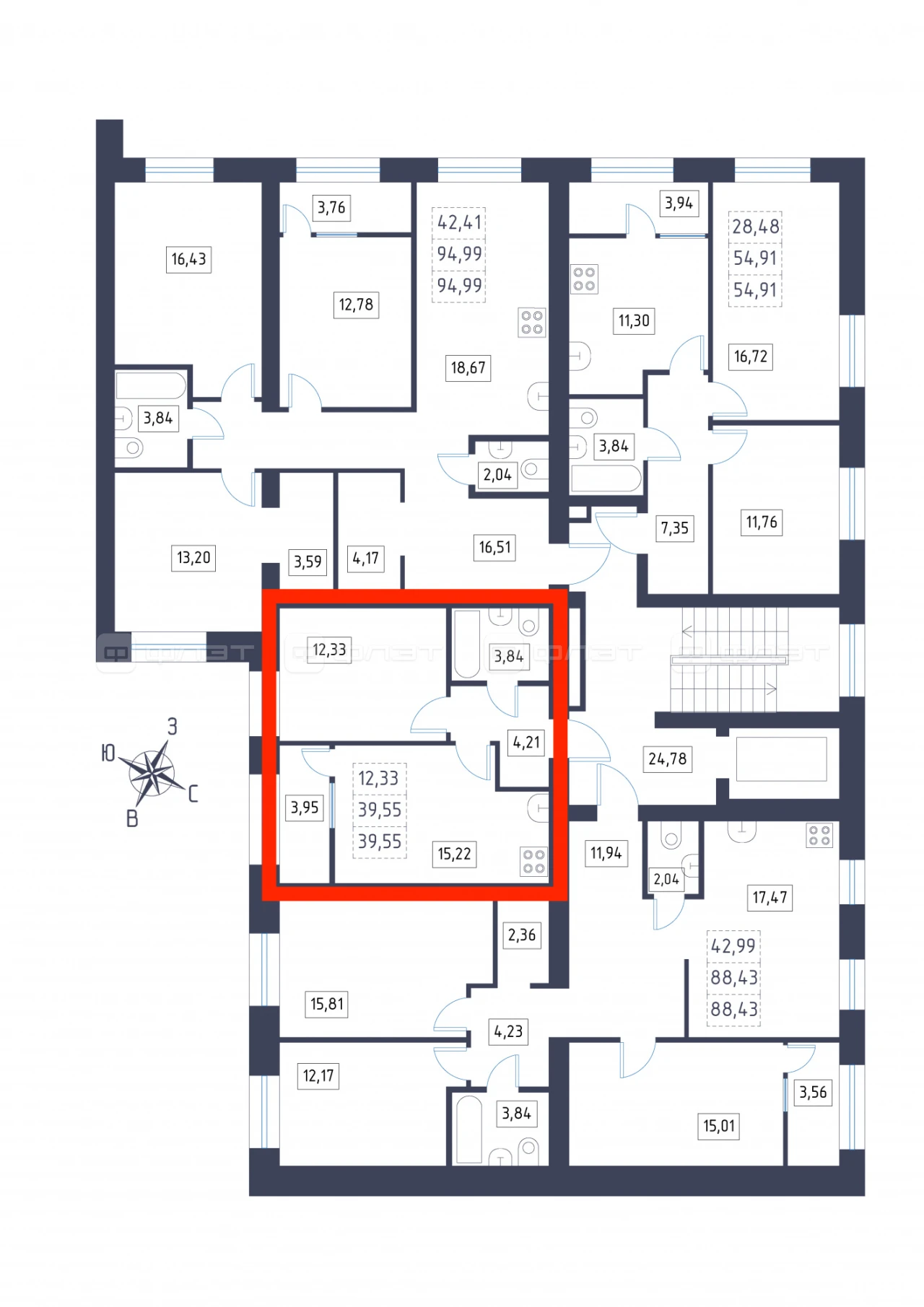 - 39.55/12.33/15.22 м²